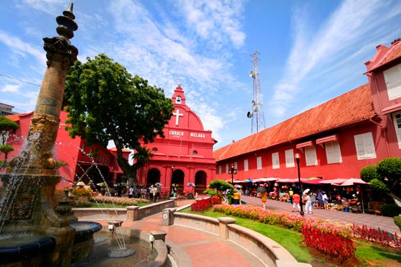 的“红屋区”,一进马六甲就可以看到的。马六甲教堂非常多,但 是这个教堂的地理位置绝佳,再加上外墙颜色亮眼,所以当之无愧