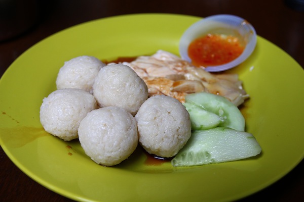 在老桥附近有三家以“海南鸡饭”出名的小店,第一家是桥下的“中华茶室”,第二家是鸡场街口门牌6号的“和记鸡饭团”,第三家是在鸡场街门牌21号的“古城鸡饭粒”。